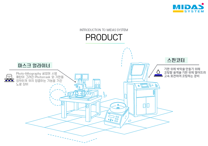 MIDAS SYSTEM Co., Ltd. develops and produces Mask Aligner and Spin Coater equipment requird by laboratories and companies related semi-conductor, MEMS, Bio element and Nano Technologies. As for the mask aligner for wafer, we led the first development and commercialization in Korea, and continued to make up for the technologies in order to strengthen the basis as a technology centered company. Also the mask aligner for wafer is applicable for various fields and at present utilized in board fields such as the research and production of semi conductor, the research on the MEMS process and the production from MEMS applications, researched on bio chips and Nano technologies.